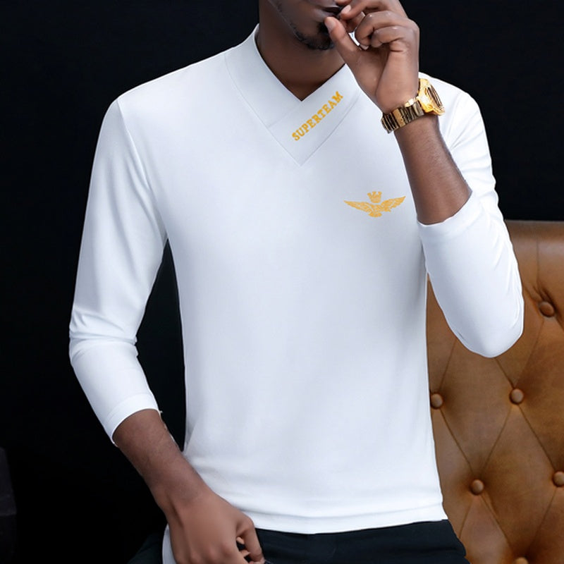 A unique hybrid style combining the clean lines of a V-neck with the subtle height of a turtleneck, giving you a fresh, urban edge. -